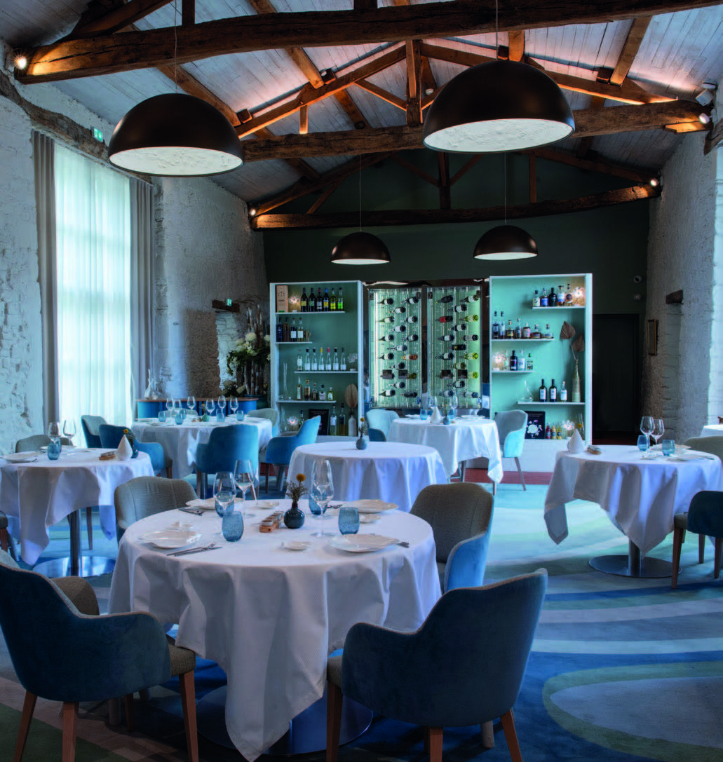 Construit entre le milieu du XVe et le XVIIIe siècle, au centre de la Vendée militaire – entre le pays de Retz et le bocage – le Logis de la Chabotterie est une demeure seigneuriale typique du Bas-Poitou. La métairie fait face au château, et c’est dans l’un de ces bâtiments annexes que Benjamin et Audrey Patissier ont installé leur restaurant. À l’endroit même où le chef Thierry Drapeau avait précédemment exercé.
