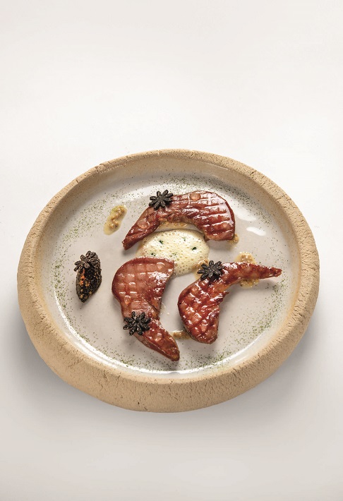 Trois cépages en macération envoûtants aux accents de marmelade d’orange et de thé Earl Grey. Puissant et subtilement amer, ce vin enrobe les condiments du plat et converse avec la biche.