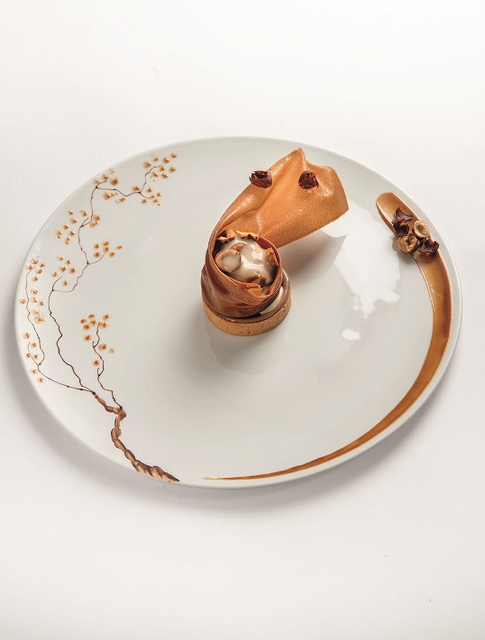 Dessert axé sur la gourmandise de la noisette. J’ai voulu créer un cocktail dont « la gourmandise » reste le maître-mot. Je me suis inspiré du célèbre Expresso Martini réalisé avec une vodka infusée aux noisettes torréfiées et une liqueur de noisette. Le tout garni d’un nuage onctueux à la pâte à tartiner.