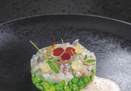 DÔME DE FOIE GRAS, POMME GRANNY SMITH, PAIN D’ÉPICES, PISTACHE
